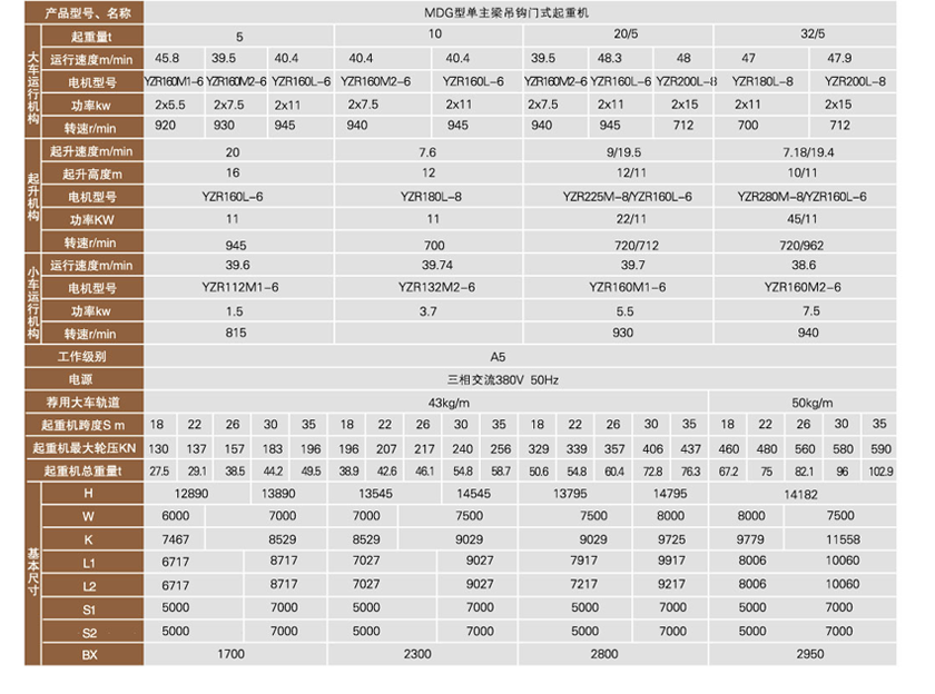 MDG型單主梁吊鉤門式起重機選用注意事項: